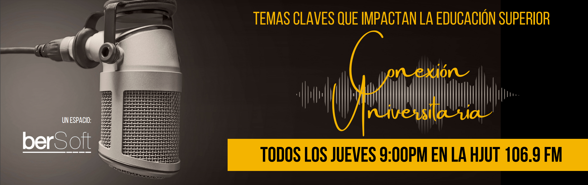 ¡Bienvenidos al Programa Conexión Universitaria! Aquí en Bersoft, nos complace presentarles un espacio dedicado a explorar los temas más relevantes y de impacto para la educación superior y la sociedad en general. Todos los jueves, sintoniza nuestra emisión a través de la emisora HJUT 106.9 FM y acompáñanos en este fascinante viaje de conocimiento e inspiración. Prepárate para sumergirte en conversaciones apasionantes y descubrir cómo la educación superior moldea nuestro presente y futuro..
